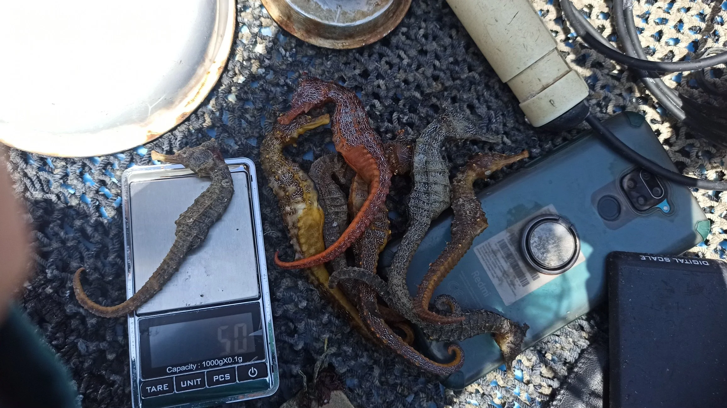 Image of landed seahorses © Marta Flotats / Project Seahorse